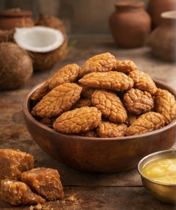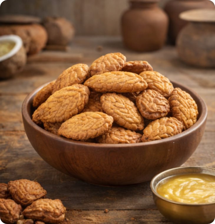 Handcrafted thekua made with desi ghee and jaggery, inspired by Bihar’s home kitchens. Crisp, authentic, and made without refined sugar or preservatives.